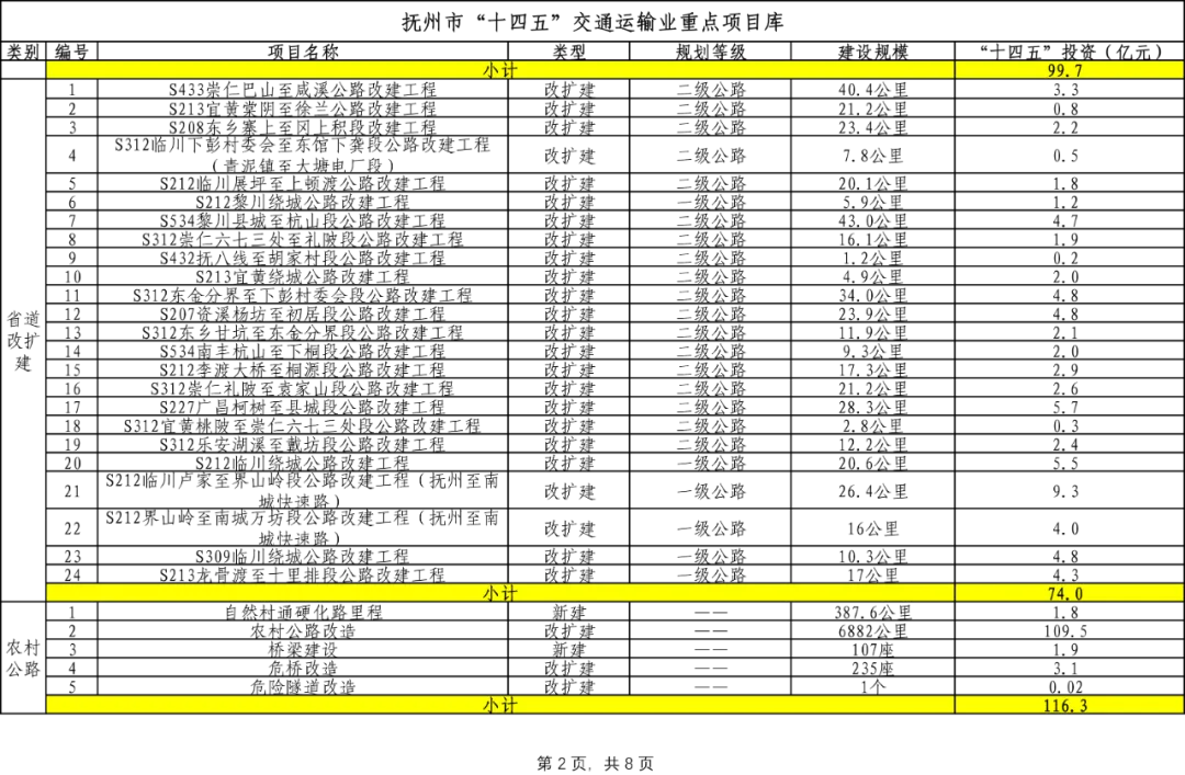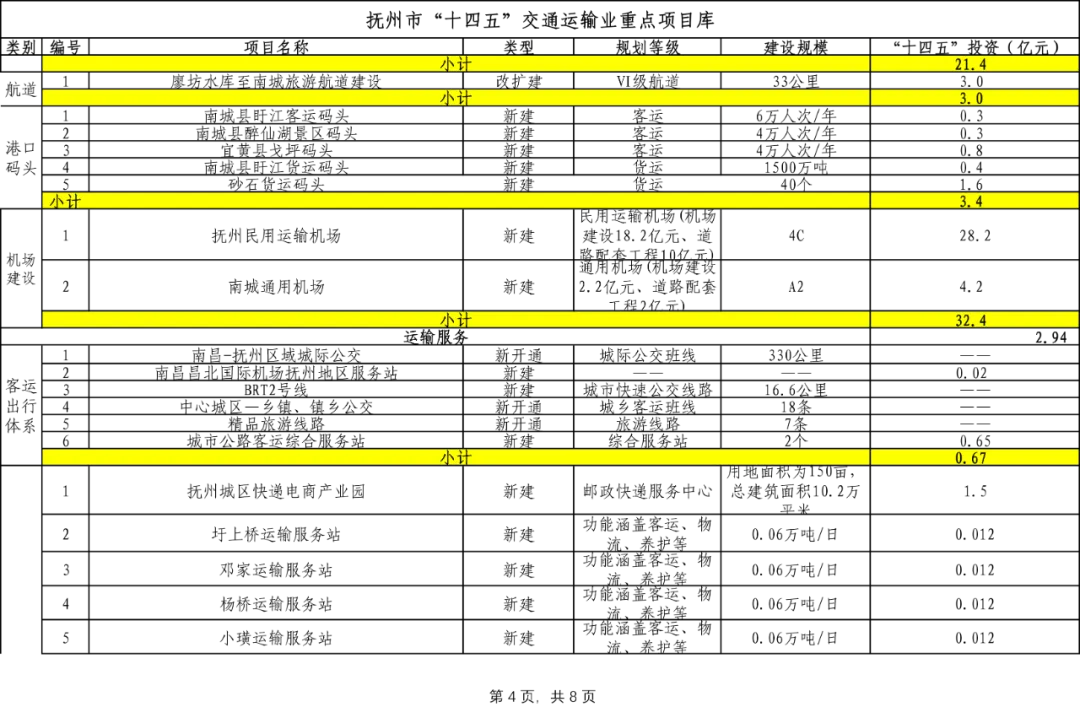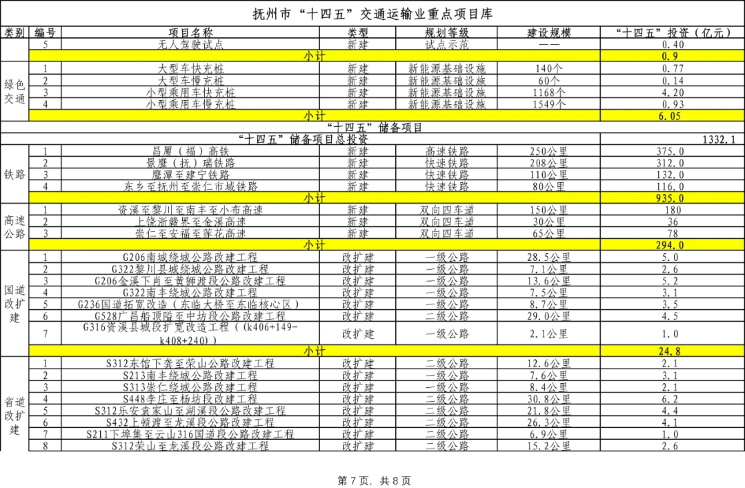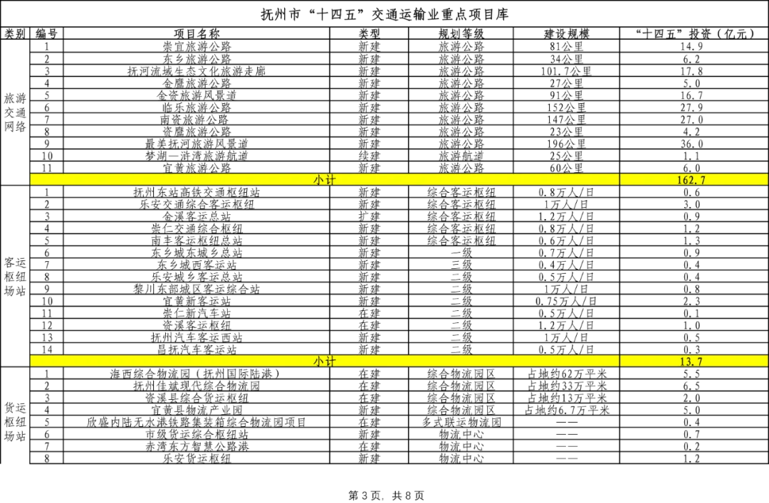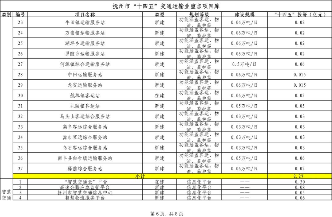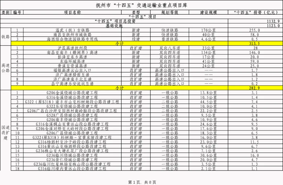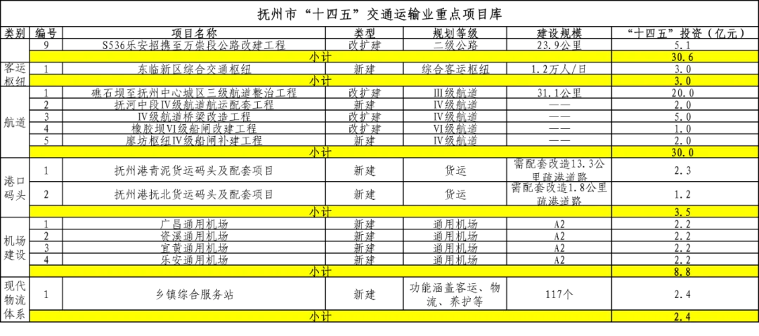 抚州市“十四五”交通运输业重点项目