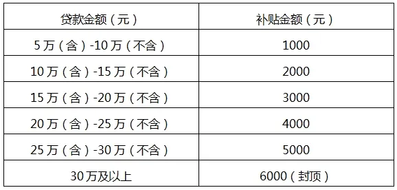 根据创业担保贷款金额,按以下标准发放补贴:享受创业担保贷款金额高于5万元(含5万元)低于10万元(不含10万元)的,给予1000元稳定创业补贴;每增加5万元贷款金额,增加稳定创业补贴1000元,最高不超过6000元。具体如下: