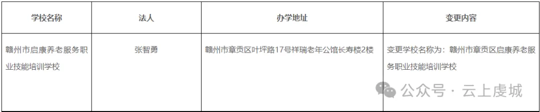 变更学校名称为:赣州市章贡区启康养老服务职业技能培训学校