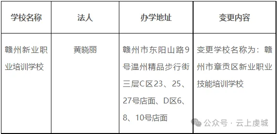 变更学校名称为:赣州市章贡区新业职业技能培训学校