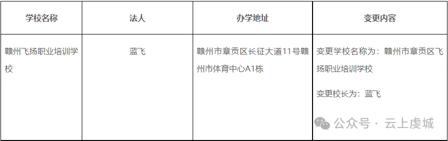变更学校名称为:赣州市章贡区飞扬职业培训学校