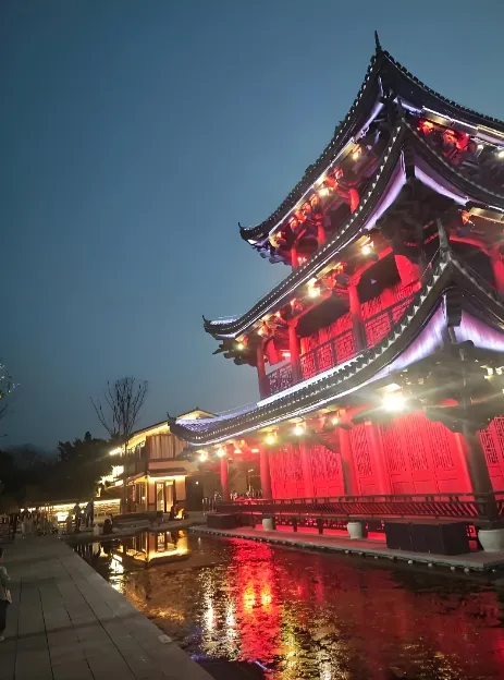 七鲤古镇的夜景依赖灯光秀营造氛围。 灯一亮,确实热闹,拍视频也出片。 可灯太密、音乐太满、演出太频,人的情绪会被推着走。 古镇夜里最舒服的状态,其实是半明半暗,河边有风,店里有灶火,坐着聊两句,时间慢下来。 把夜晚做成大型灯光秀,短时间能拉人,长时间会疲劳。