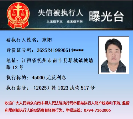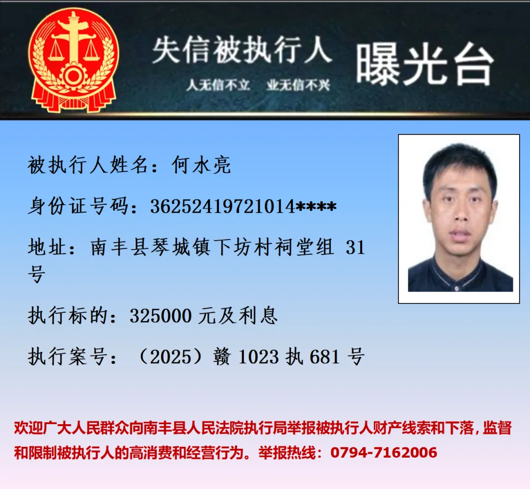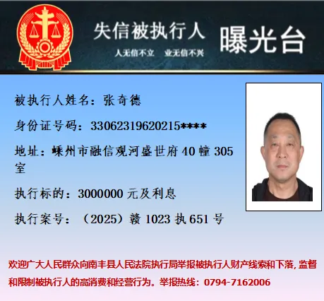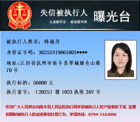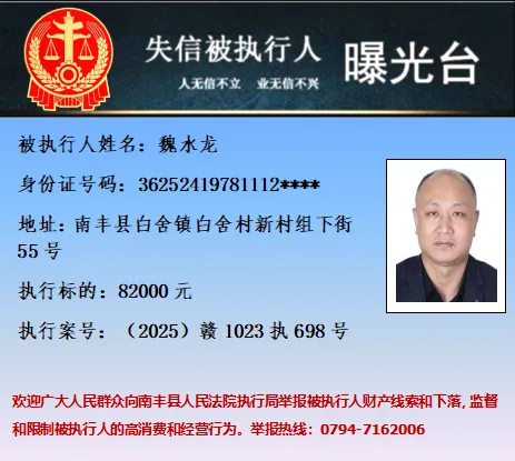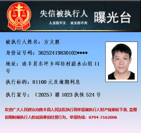 名单信息截止为2025年12月30日,欢迎广大群众提供失信被执行人财产线索,对有高消费、转移或隐匿财产、规避执行等行为,予以举报。