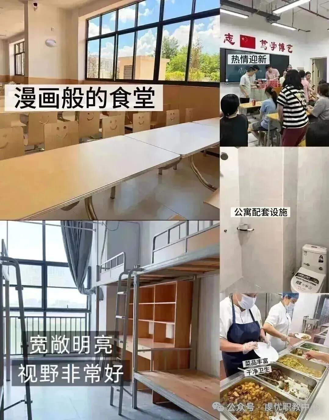 线下集训校区提供 4-6 人定制宿舍(独立卫浴、24 小时热水、空调、专属书桌),食堂主打 “营养均衡 + 口味多样”,三餐搭配贴合备考节奏;全封闭管理 + 24 小时安保 + 生活老师值班,家长不用担心中职生在外的安全和生活,学生能全身心投入学习。
