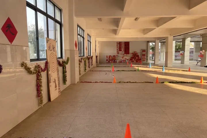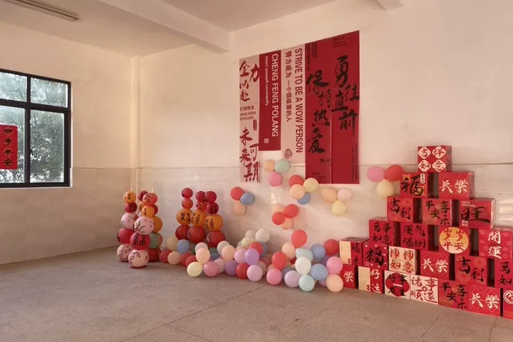 12月31日,学校的架空层早已被装点一新。在师生的精心布置下,五彩缤纷的气球、彩带、彩旗等共同营造出喜庆祥和的节日氛围。