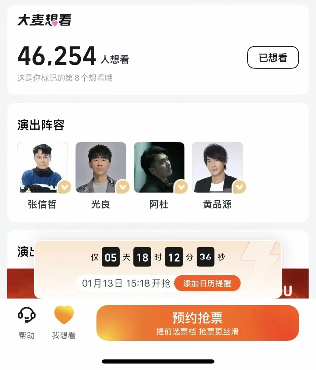 喜欢张信哲、光良、阿杜、黄品源的朋友们记得提前预约抢票!