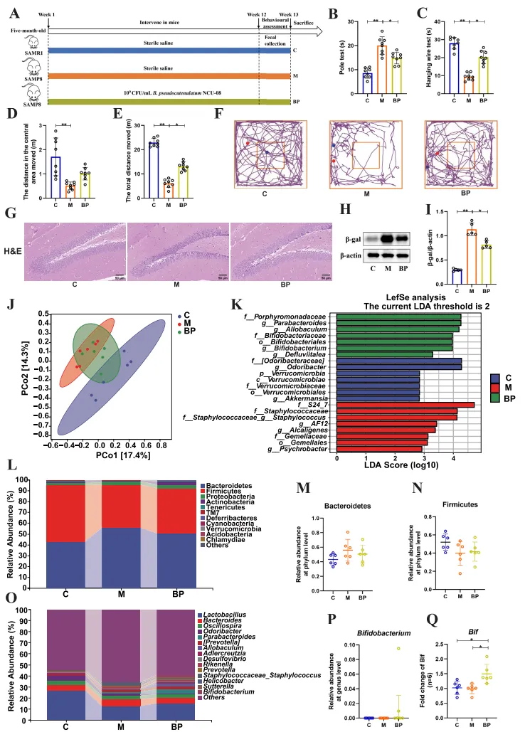 B. pseudocatenulatum NCU-08显著改善SAMP8小鼠衰老表型