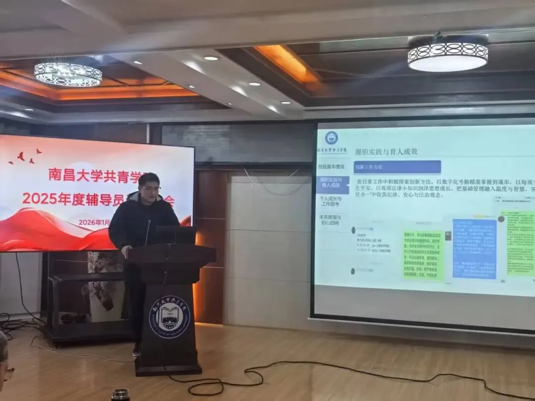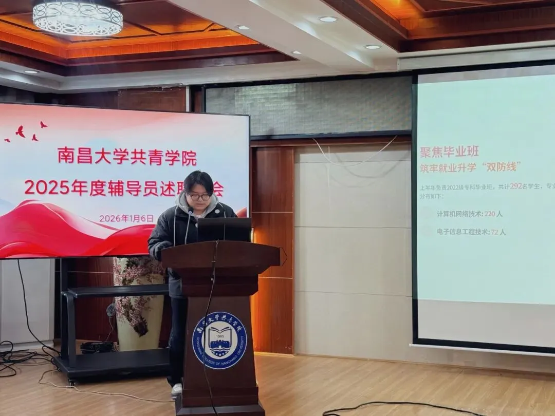 最后,学院党委书记易槐红作总结讲话。他首先代表学院党委对全体辅导员的辛勤工作表示感谢,并对述职评议的组织与效果给予肯定。易书记强调,述职不仅是年度工作的总结反思,更是队伍成长与事业发展的重要契机。他对辅导员提出四点明确要求:一要善于规划引领,既要指导学生科学规划学业与人生,也要做好自身职业发展规划,明确成长路径,持续提升综合能力;二要注重深学实干,不断加强理论学习和政策领会,做到学思用贯通、知信行统一,将学习成果转化为育人实效,筑牢立德树人思想根基;三要强化队伍带动,重视学生骨干的培养与使用,推动工作模式从“事务管理型”向“引领成长型”转变,发挥好学生自我教育、自我管理、自我服务的作用;四要坚持共同成长,在陪伴学生、服务学校发展的过程中实现个人价值与事业进步的同步提升,凝聚起推动学院高质量发展的合力。