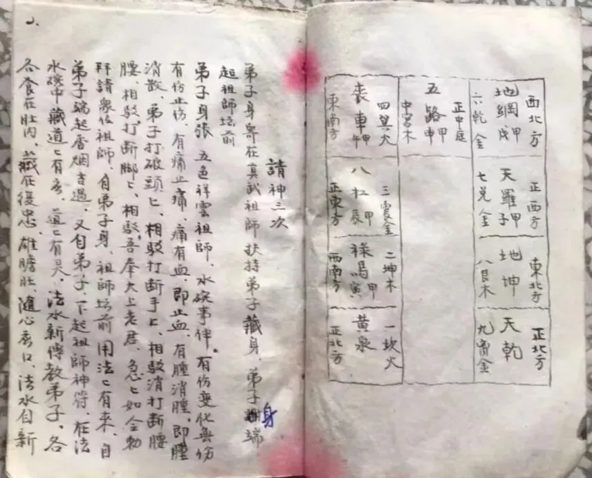 赣州兴国民间符咒,请神三次,小咒神三次,无三牲就茶酒小请三次,端起大碗水咒教请连咒三次,化大碗水祖师令,点兵,坊前口教弟子,寄身土埋藏,做师傅归坛前,断口教,请太上老君,竹青符,治痛灵符,治肚痛,观音咒语,大将军押煞,男人吐血不止方,神鬼,九龙下海,符咒,制白蚁用,