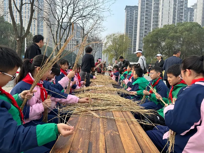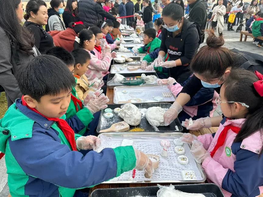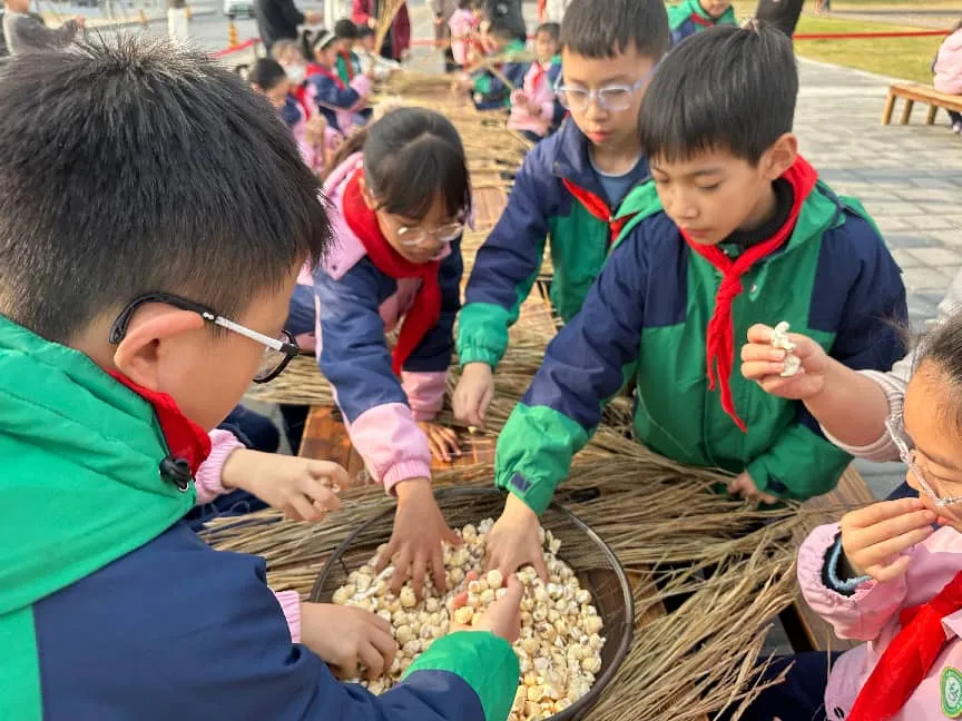 在秋收成果分享会上,米糕制作区里香气扑鼻,爆米花制作区里噼啪作响,泡泡果制作区内味道清甜,稻草艺术区里创意飞扬……同学们沉浸式体验从田间到餐桌的全过程,在欢声笑语中感受农趣,在丰收的喜悦中理解“一分耕耘,一分收获”的真谛。