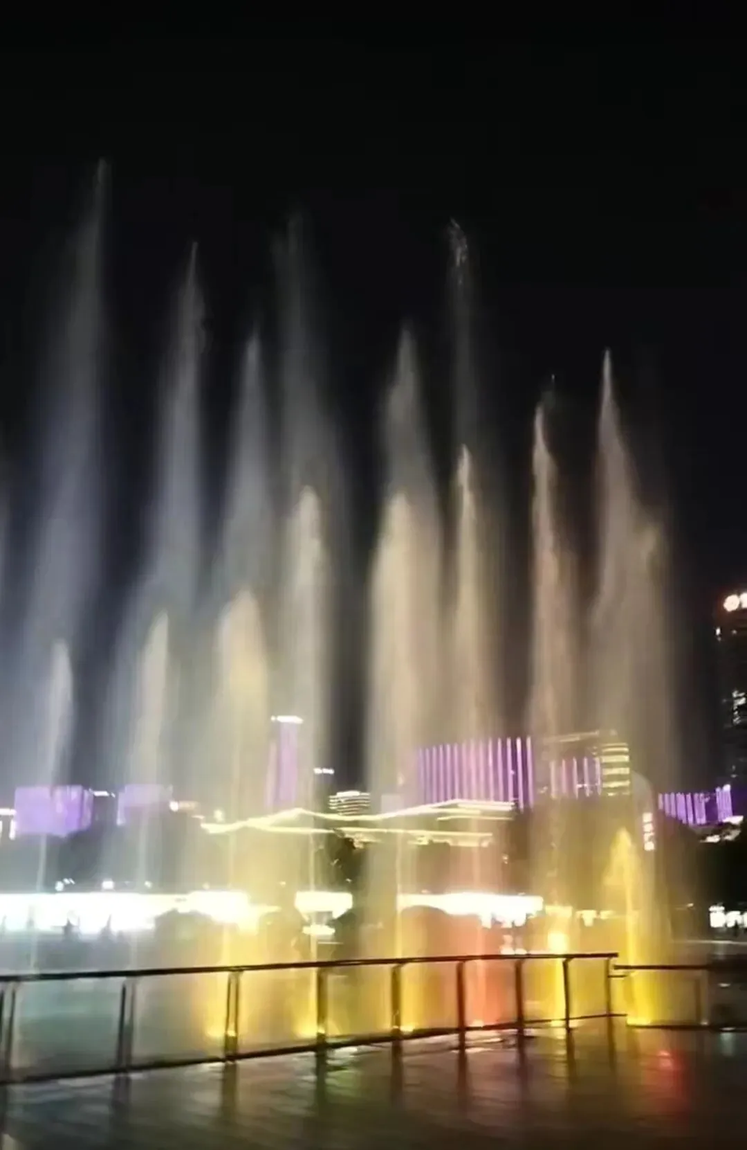 一场喷泉的时间大概是10分钟左右,有些飘揚下来的细细水雾喷洒在头上,在这个不算冷的晚上竟然有种别样的感觉……
