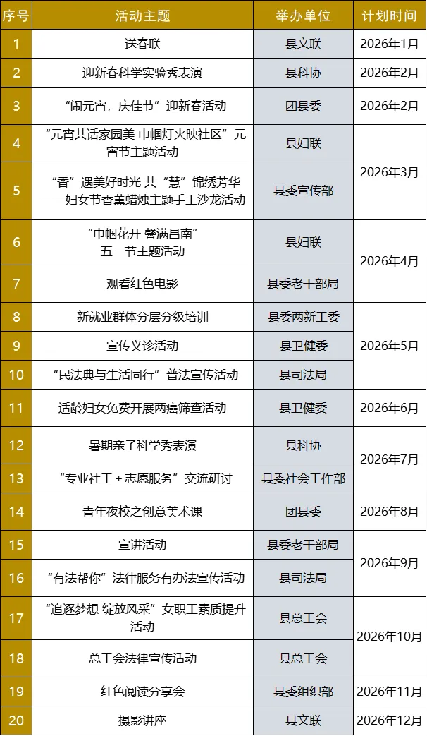 岁序更替,华章日新。回望2025年,南昌县党群服务中心坚持以“党群共建、阵地共享、资源共用”为运营理念,成功搭建起一座座连接党心民心的桥梁。2026年,我们将以更开放姿态、更暖心举措推动阵地提质增效,全力打造党员群众的“学习平台”“交流驿站”。南昌县党群服务中心期待与您常相聚、共成长,让这里成为传递温暖、凝聚民心的幸福港湾!