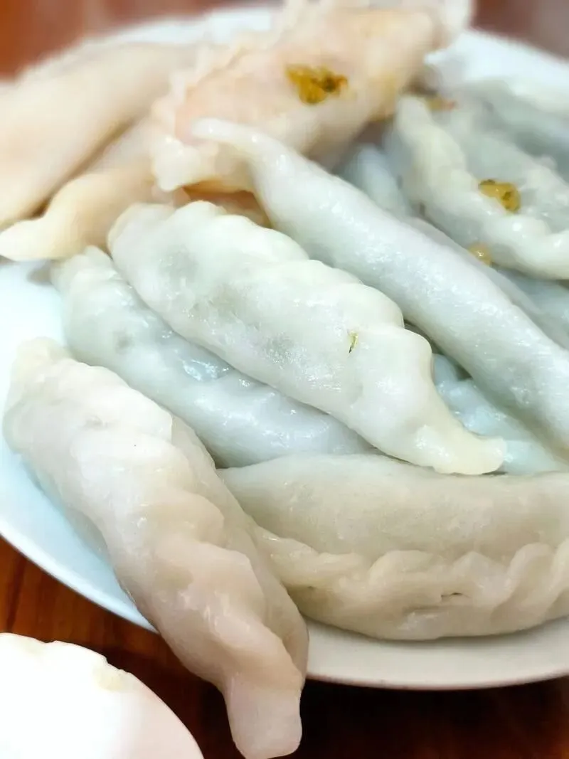 皮子是用大米粉做的,半透名的那种,包的馅儿分咸甜两路。咸的包萝卜丝腊肉,甜的包芝蔴白糖。上锅一蒸,皮子变得晶莹剔透,能隐约看见里头的馅儿。