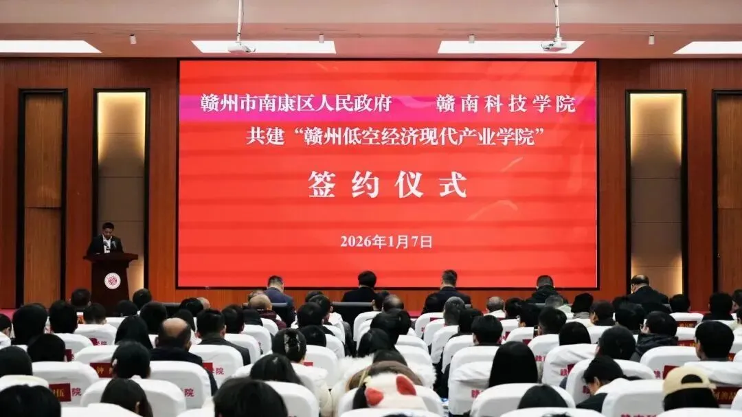 1月7日,南康区人民政府与赣南科技学院举行共建“赣州低空经济现代产业学院”签约仪式。此次签约标志着校地双方合作迈向全方位、深层次、常态化的战略升级,将为赣州低空经济产业高质量发展注入强劲动力,树立校地合作新标杆。