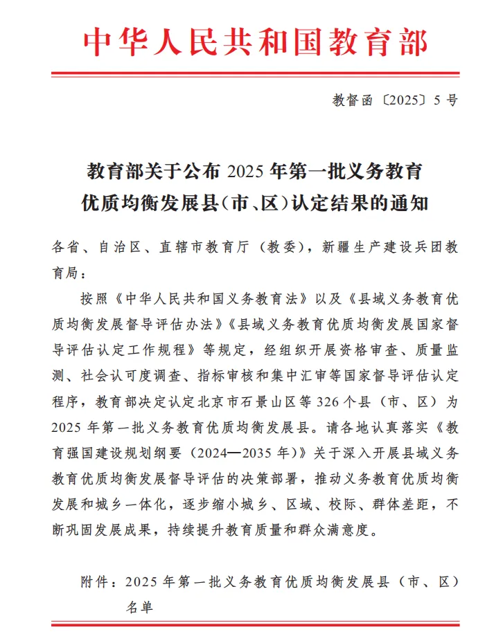 优质均衡发展县(市、区)认定名单