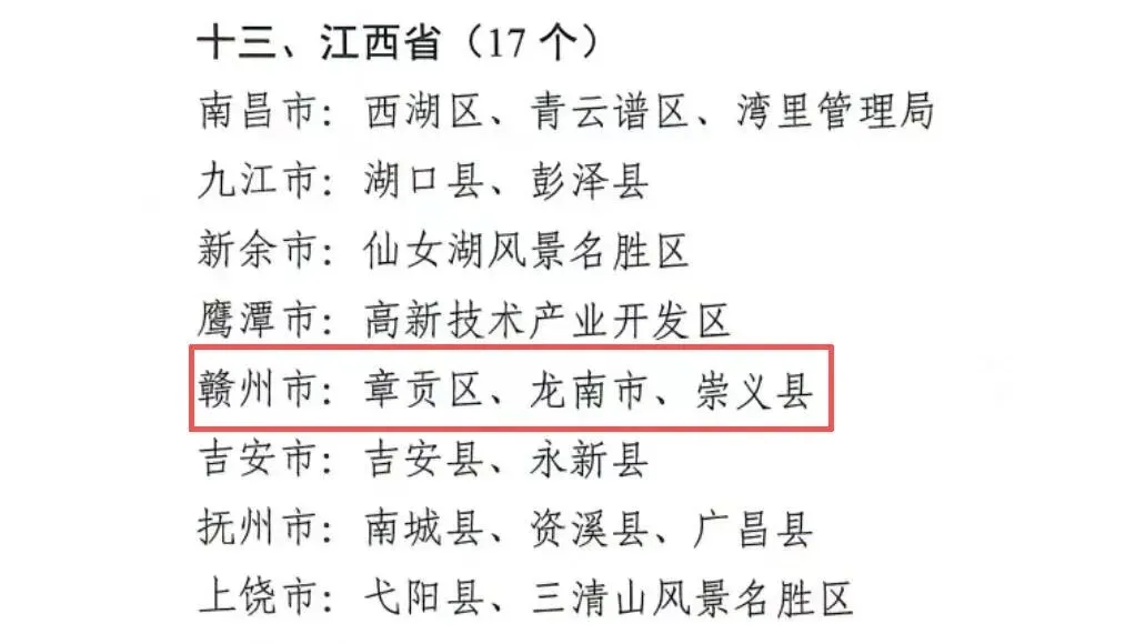 我市章贡区、龙南市、崇义县上榜