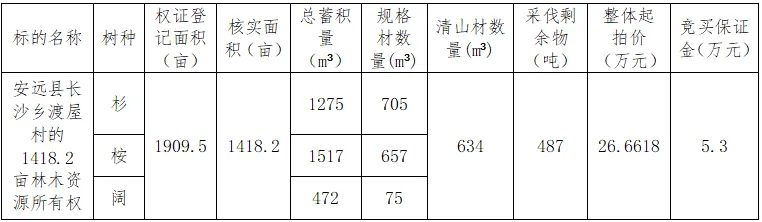 2、标的展示地点:安远县长沙乡渡屋村;