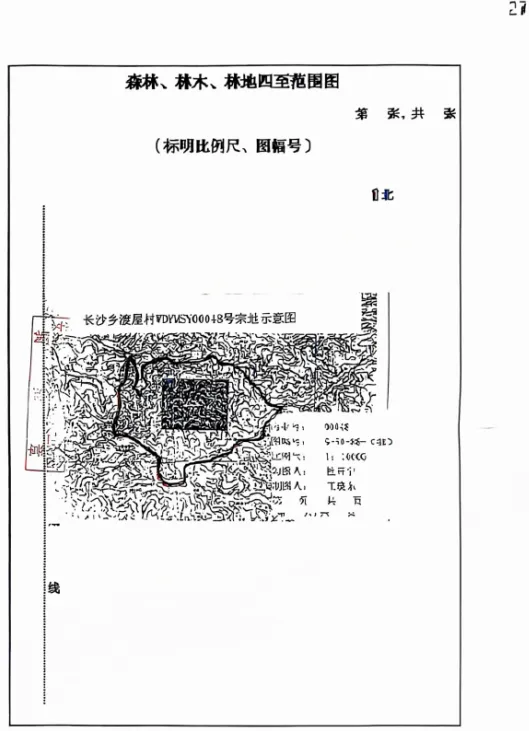 6.坐落:长沙乡渡屋村;林种:杉木、桉树(冻灾木)、阔叶树。