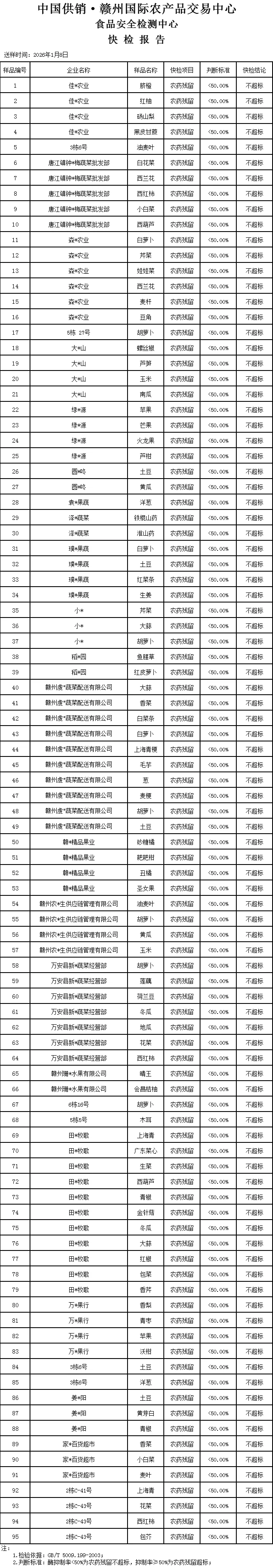 >赣州中农批市场2026年1月8日农产品农残抽样检查