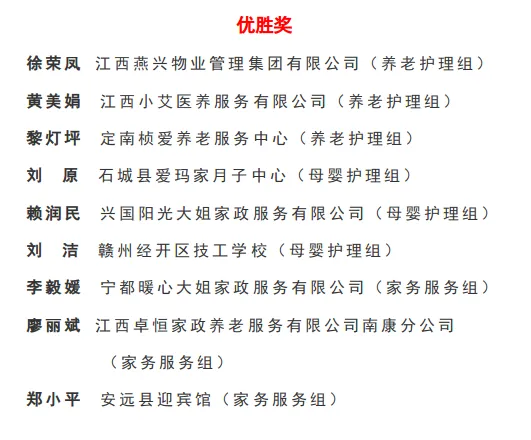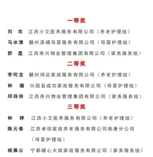 恭喜!第三届“赣南家政杯”赣州市家政服务行业职业技能竞赛获奖名单来了!