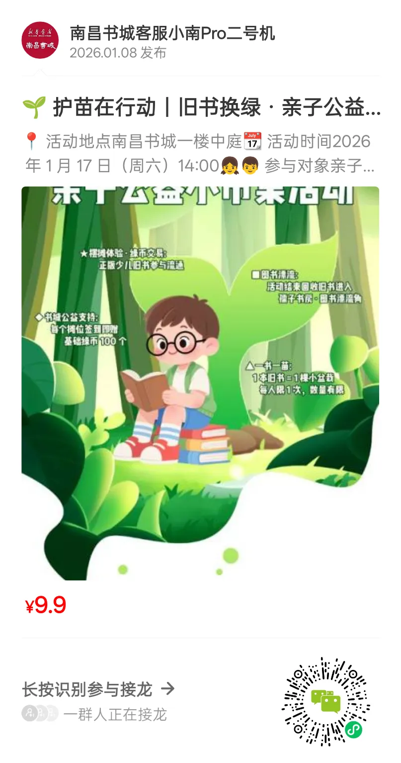 南昌家长速来!1月17日,带娃用旧书换一份绿意与公益