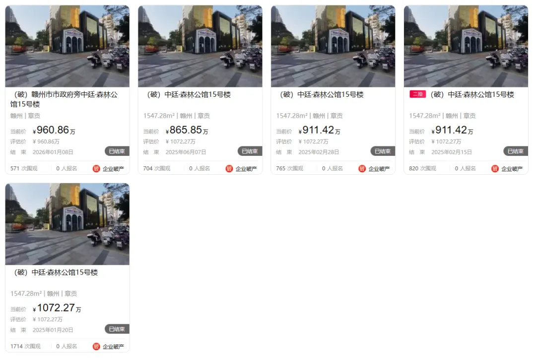 ▲ (破)赣州市市政府旁中廷·森林公馆15号楼已5次流拍