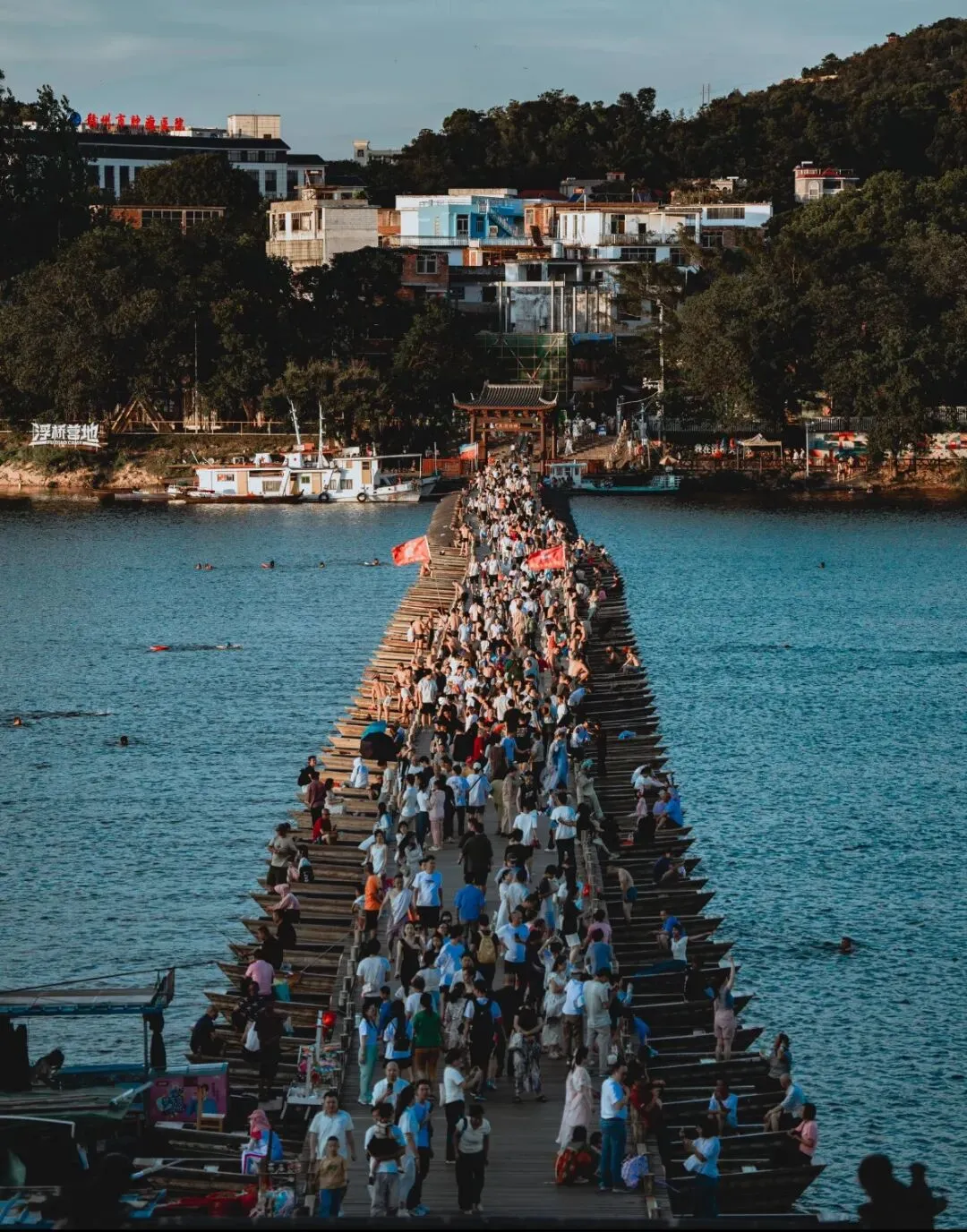 浮桥由100只木船以缆绳相连