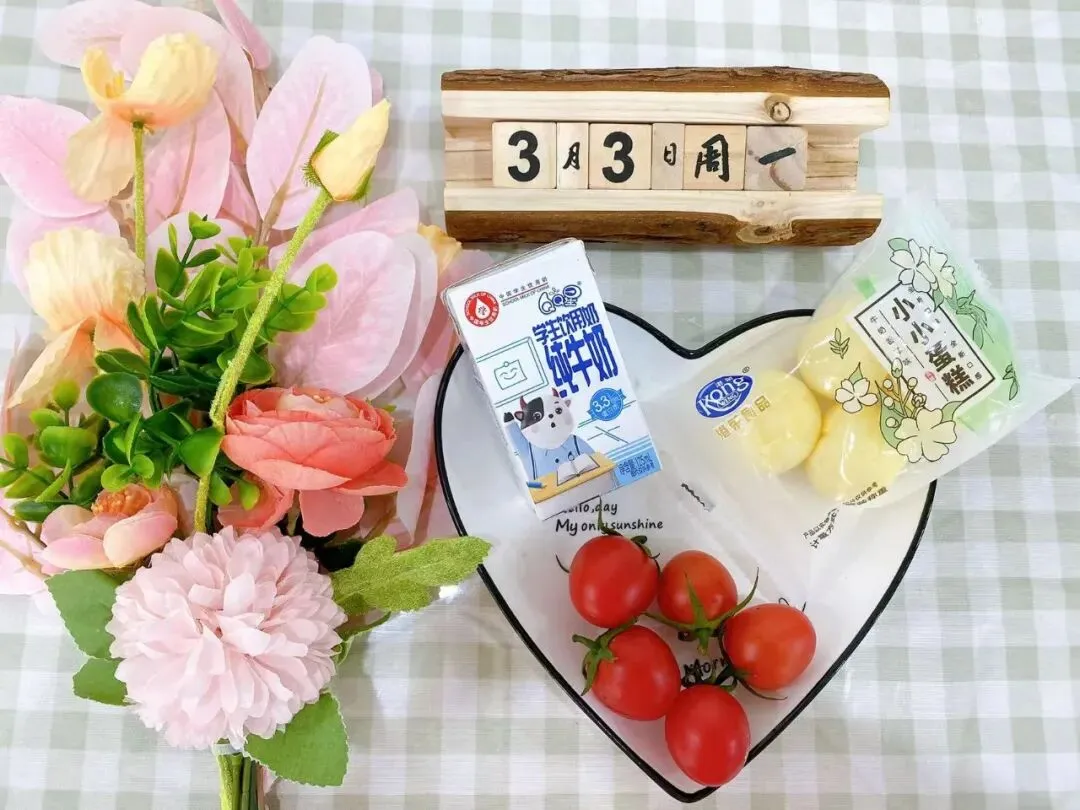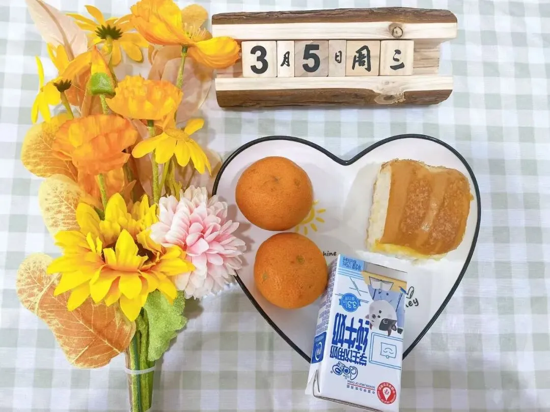 牛奶、好街坊椰蓉餐包、砂糖橘