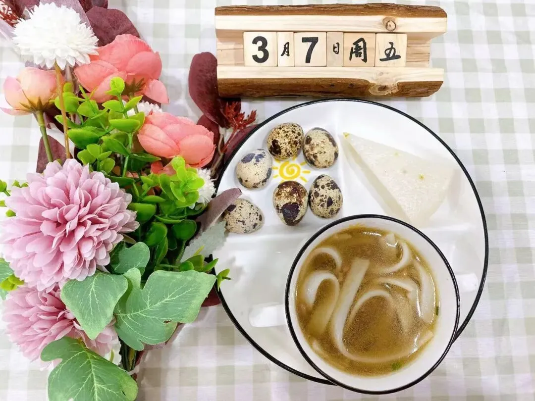 猪肝瘦肉汤河粉、桂花糕、盐水鹌鹑蛋