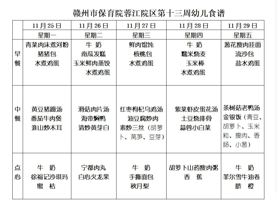 第十三周食谱