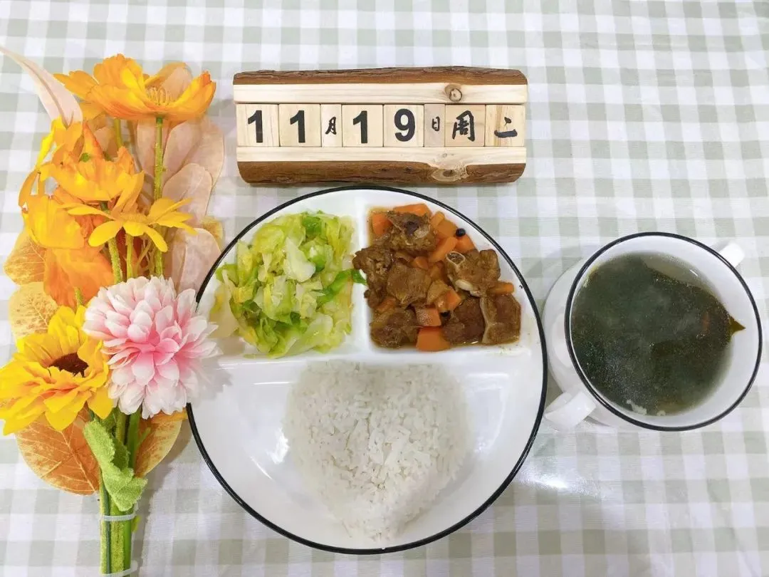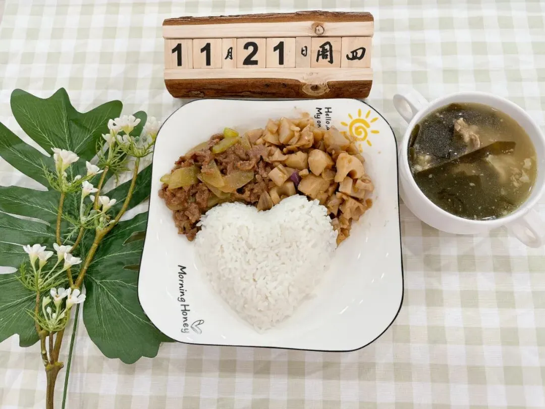 午 餐:海带筒骨汤、莴笋炒牛肉、干锅莲藕丁