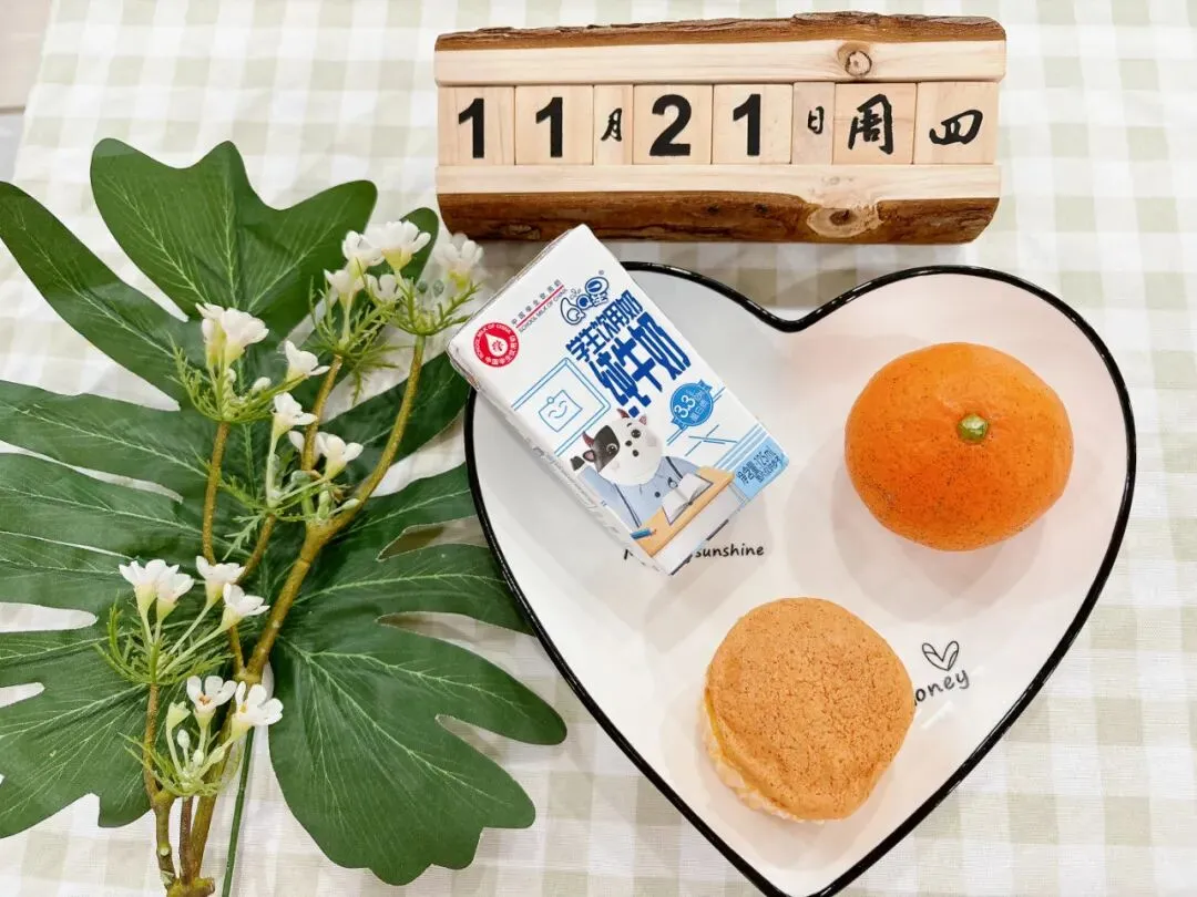 午 点:牛奶、好吃点粗粮饼干、苹果