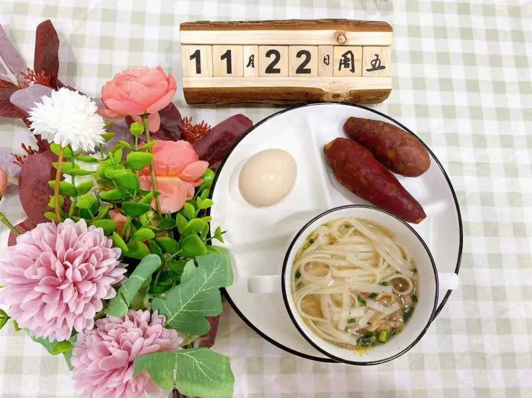 早 餐:三鲜面、蜜薯、煮鸡蛋