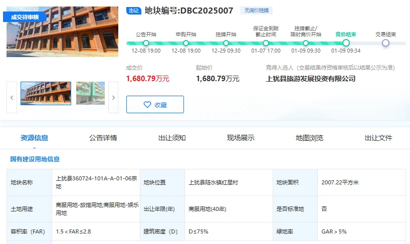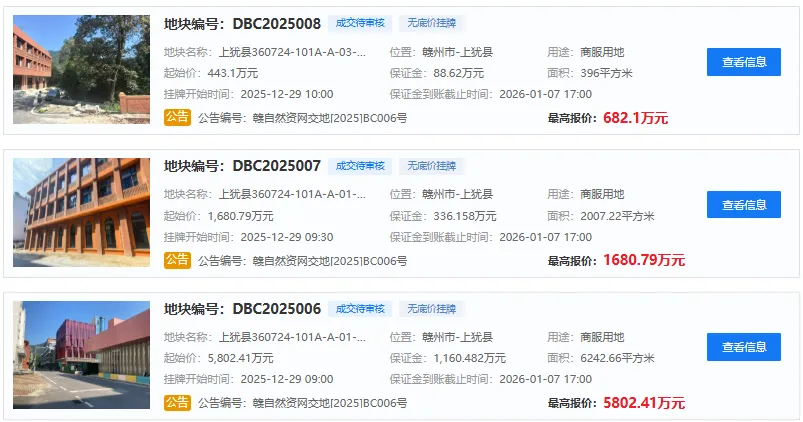 今天,上犹县旅游发展投资有限公司一口气拿下上犹县三宗商服用地,具体成交详情如下: