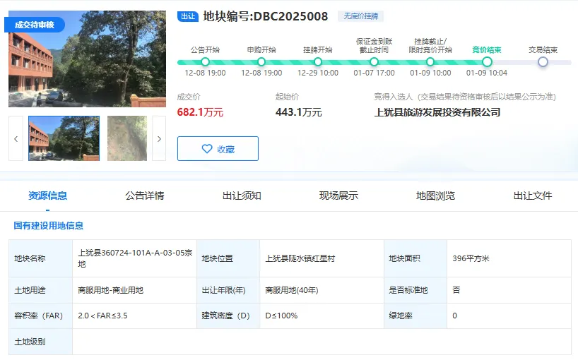 上犹县360724-101A-A-03-05宗地,成交总价682.1万元,成交楼面价约4921.3元/㎡;