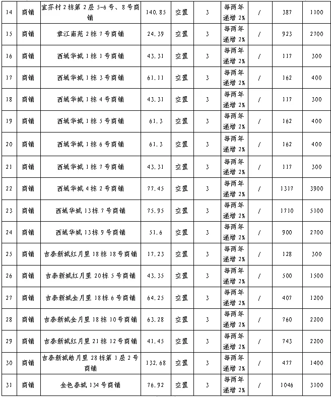 定于2026年1月27日10:00开始在赣州经开区国际企业中心A2号楼二楼开标室对阳光·黄金家园等小区三十一宗资产进行公开招租,现将有关事项公告如下: