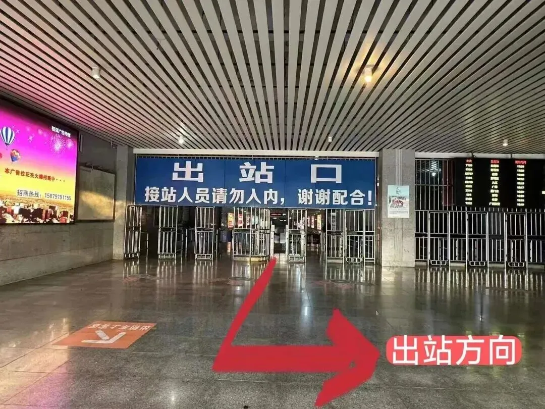 1.所有旅客通过出站闸机后统一往南向(左侧)出站。