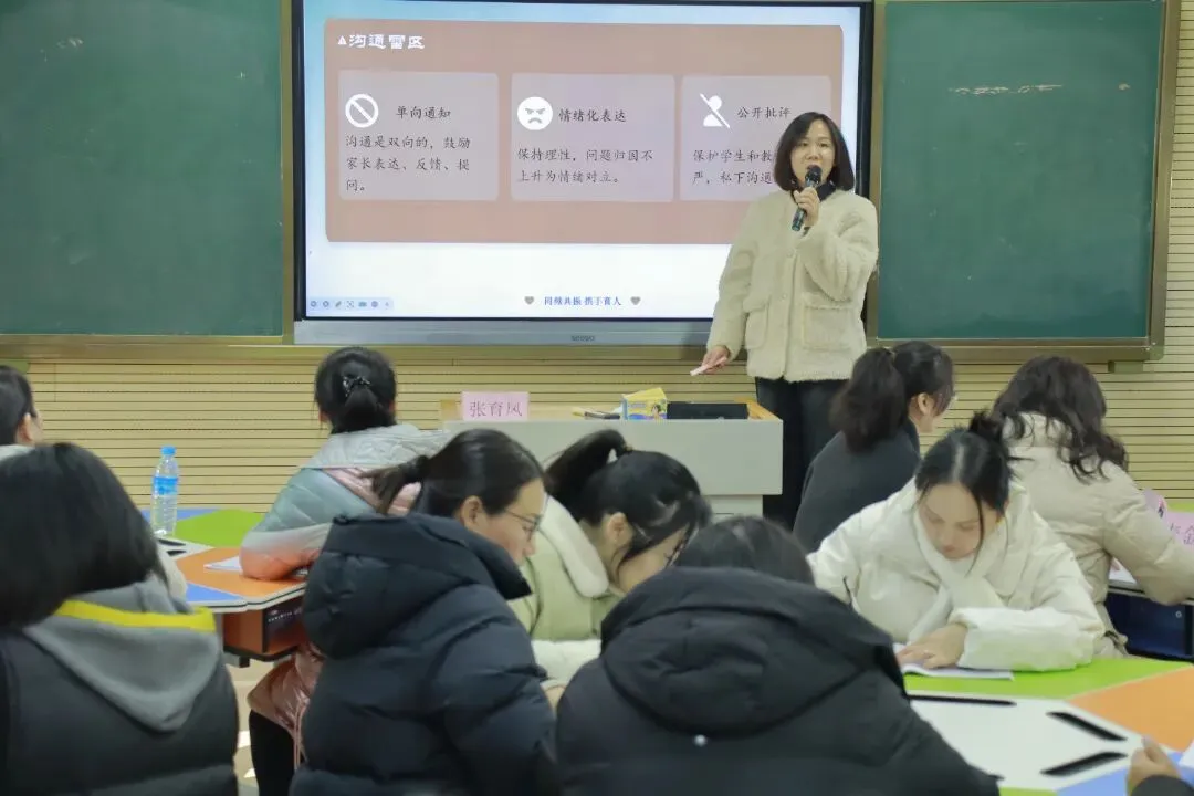 李珍珍老师则以“勤、严、细、实”四字箴言为核心,分享班级管理实用方案。强调要日常勤抓,筑牢班级根基,共商班规让规则落地,通过精细分工与激励、因材施教的方式,让班集体更具主动性与凝聚力。