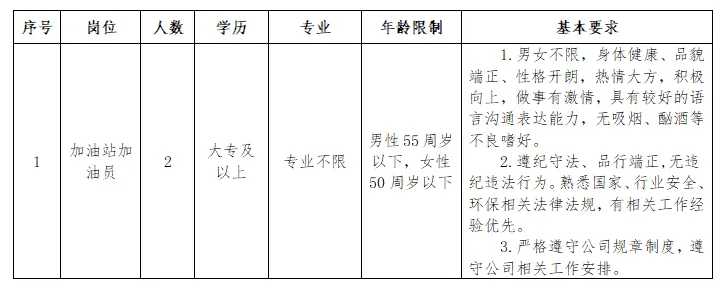 因安义县北外环加油站工作需要,现面向社会公开招聘2名临聘人员。