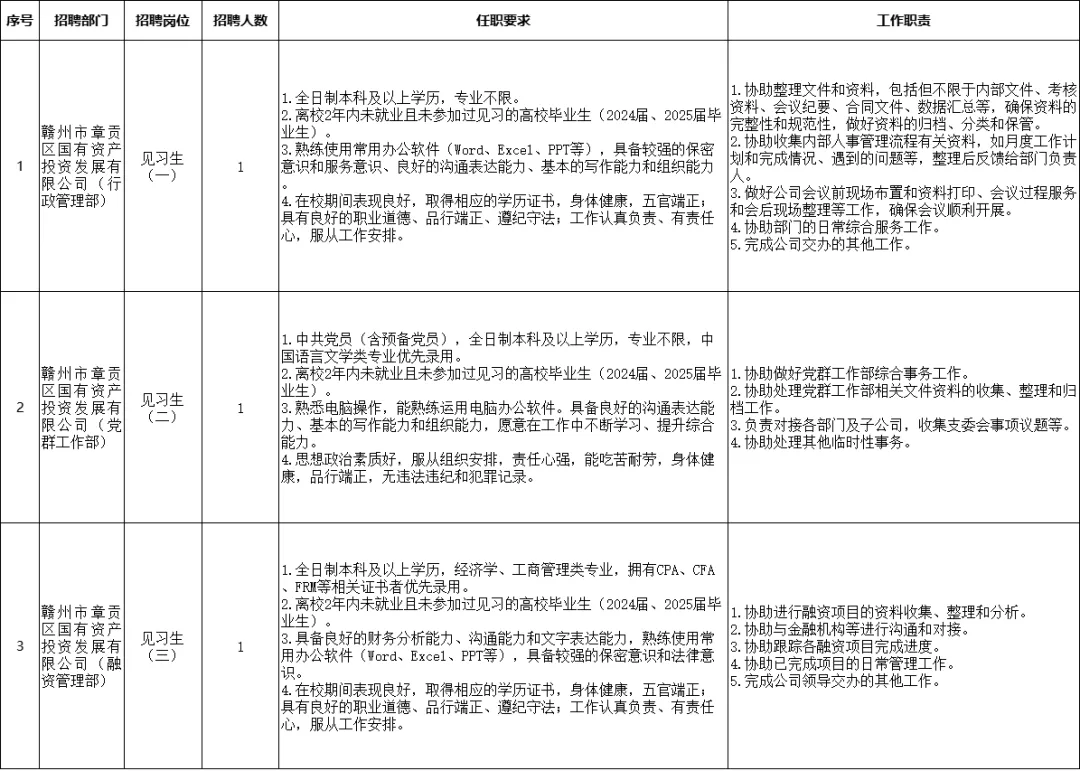 入职签订见习协议,见习期限为12个月;参照章贡国投的见习生薪酬待遇相关规定执行(见习生活补贴2300元/月)。