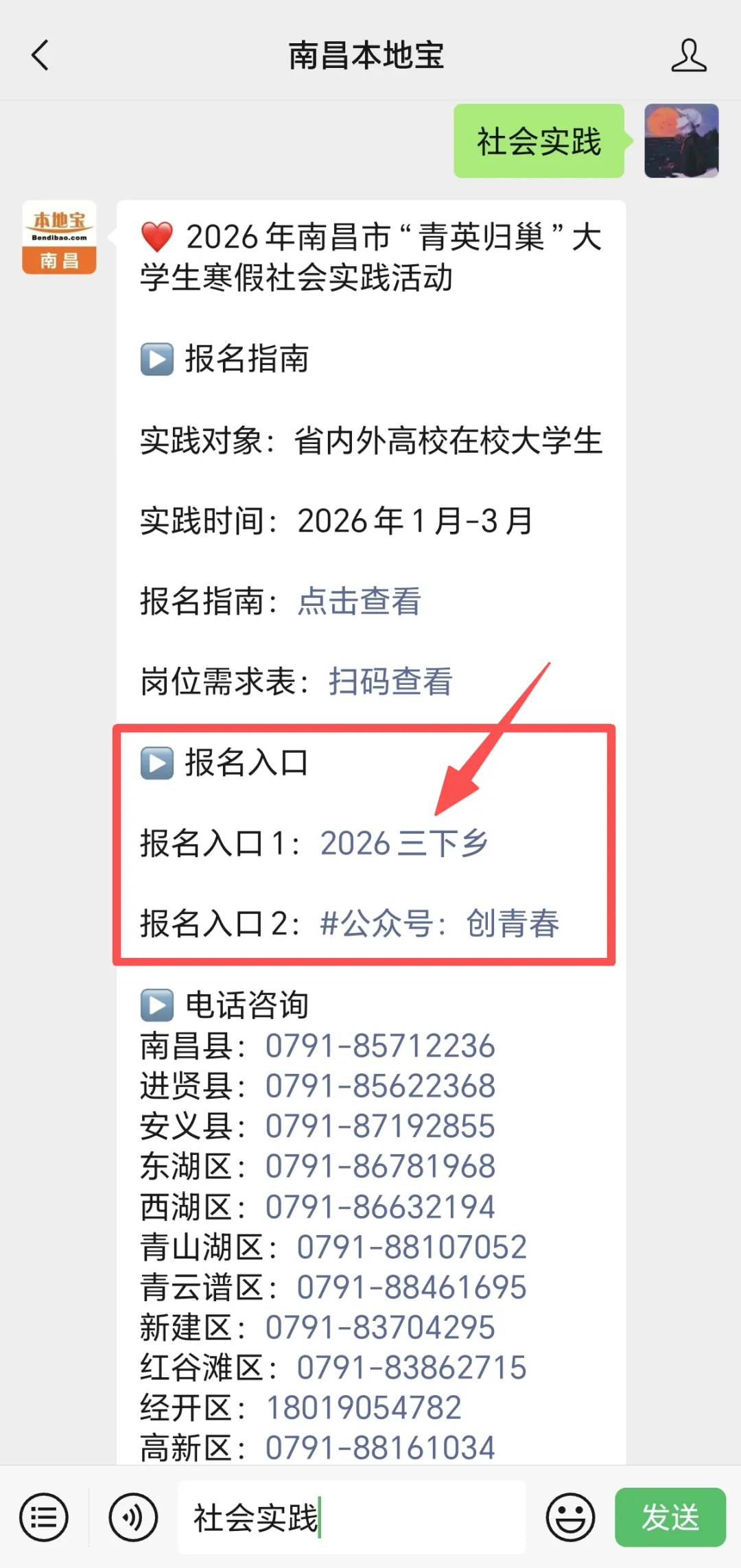 南昌本地宝推出非常多的功能,进入【南昌本地宝】公众号聊天对话框里,点击发消息,在对话框内输入并发送对应的【关键词】即可获取相关内容。