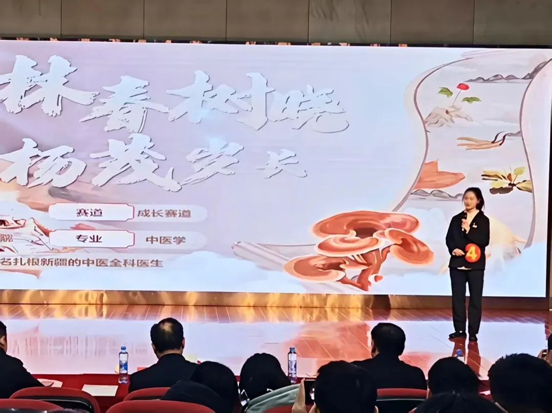 本次大赛分为个人主题陈述与评委提问两大环节,全面考察参赛选手的综合素养。参赛选手自信从容,从自我认知、环境分析、目标定位到实施路径,清晰勾勒出服务于医药健康事业的个人蓝图,展现出扎实的专业基础与远大的职业抱负。评委们的点评精准而富有建设性,既肯定规划亮点,也指明优化方向,为参赛选手乃至全体观赛学生提供了宝贵的生涯指导。