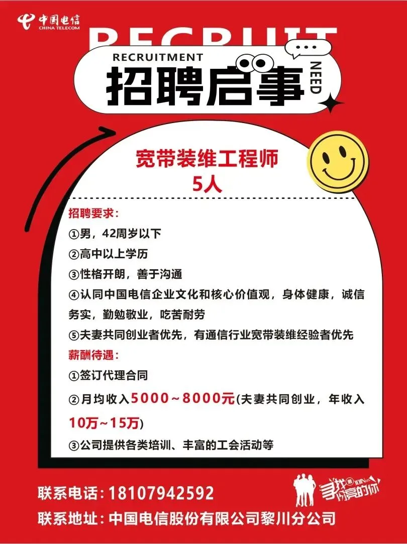 ⑤夫妻共同创业者优先,有通信行业宽带装维经验者优先。