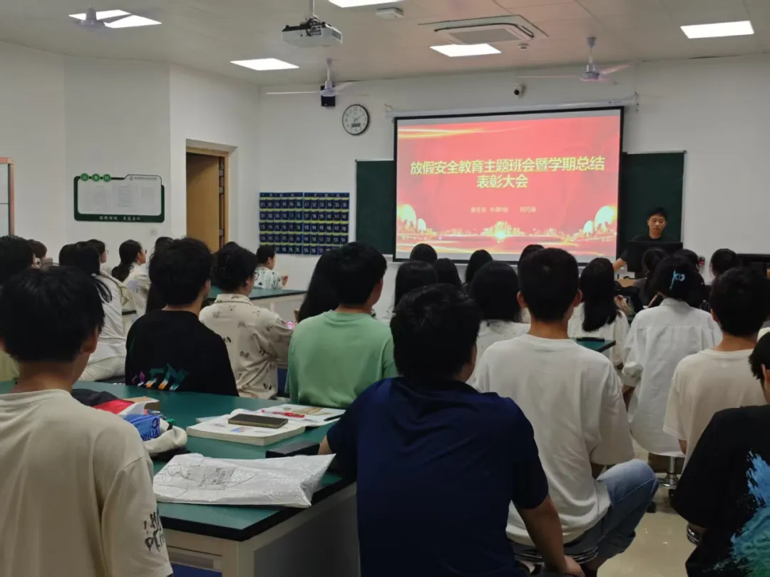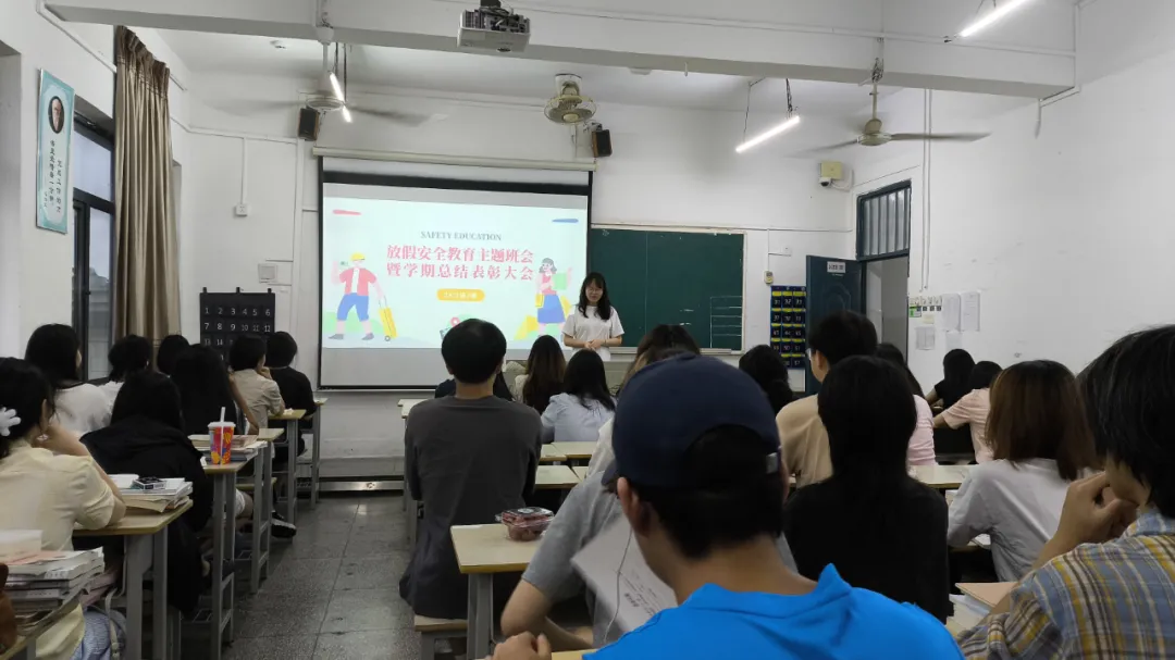 为增强同学们的安全意识,总结本学期学习生活,激励先进,表彰优秀,各系利用周末晚点名时间于6月22日举办“放假安全教育主题班会暨学期总结表彰大会”。