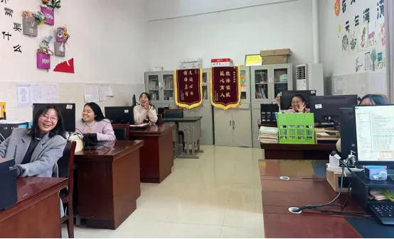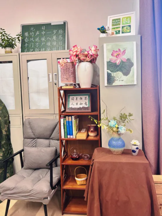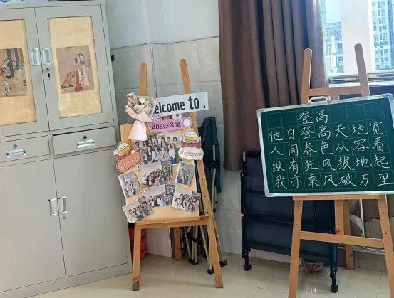 整洁是办公环境的底色,特色文化则是办公室的灵魂。各办公室巧思迸发,打造出独具一格的“精神角落”:寓意深远的室名,贴合学科特色与团队气质;墙面整齐张贴着教育格言、团队合影,字里行间满是教育情怀与集体凝聚力;《值日安排表》醒目上墙,职责分工清晰明了;几盆绿萝、吊兰舒展枝叶,为空间注入自然生机,让严谨的办公场所多了份温馨惬意,每一处布置都藏着老师们对生活与工作的热爱。