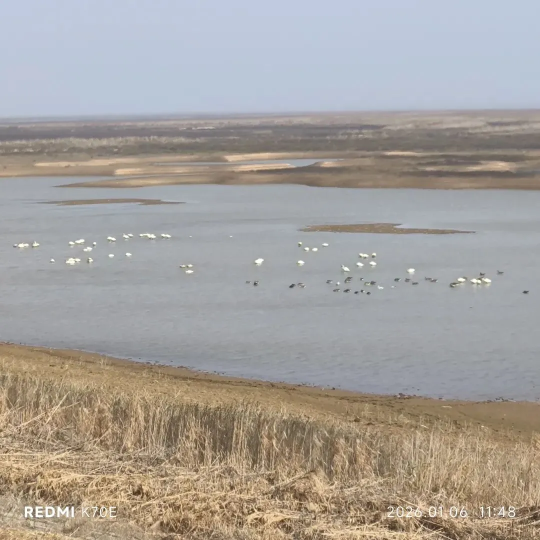 坝上风大,我们到坝内观鸟长廊去看鸟,这里的鸟还挺多,白鹤、灰鹤、天鹅……,观鸟长廊是木质栈道,有白鹤来此越冬的相关介绍,来这里越冬的白鹤大多数是从遥远的西伯利亚飞过来的,怕惊着鸟儿,栈道与鸟儿们所在的藕田有一段距离,只能通过栈道预留的空格处观察;如果想更近的观察,就要到摄影专用小屋,那里离鸟儿更近,需预约并支付费用。游玩的过程中听到附近村民说今年的鸟没有往年多。