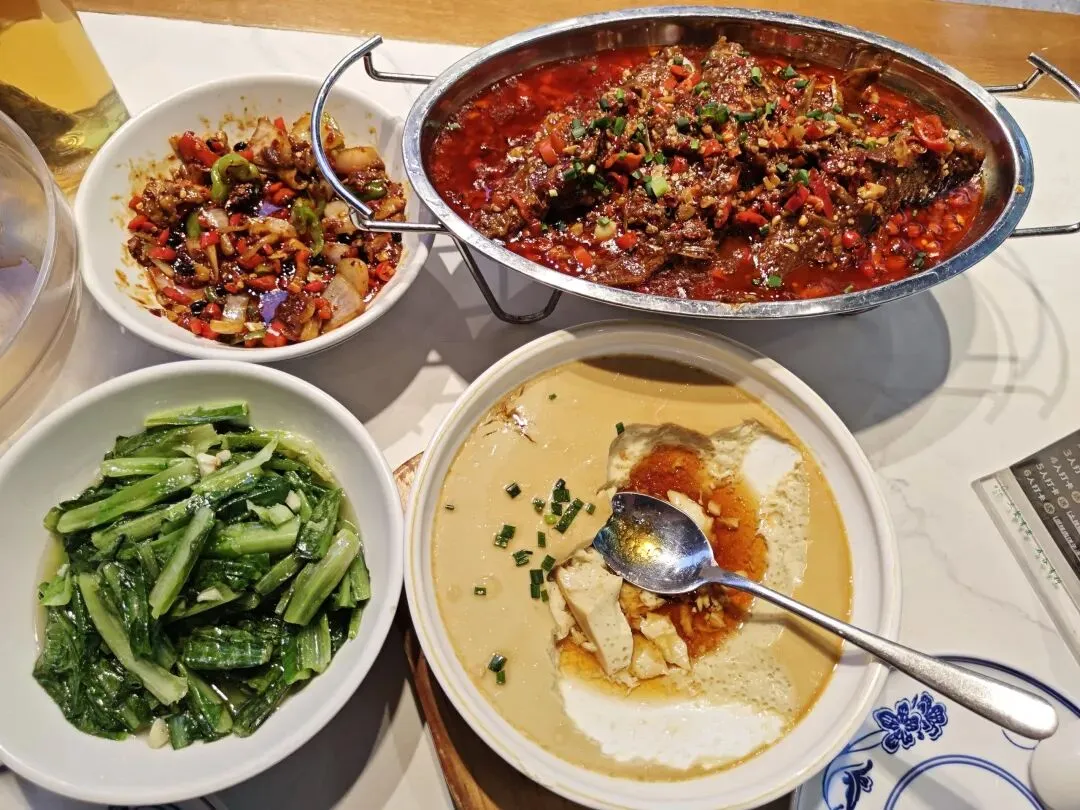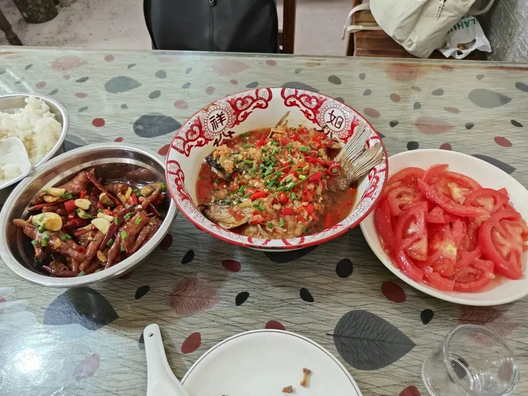 - 油浸鱼:满盆的鲜剁椒铺在鱼头上,鱼肉嫩到夹不住,辣得我狂灌冰奶茶,却忍不住再夹一筷子;