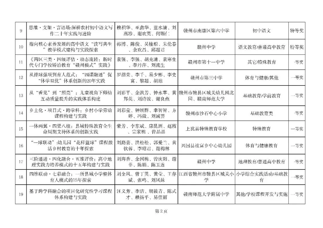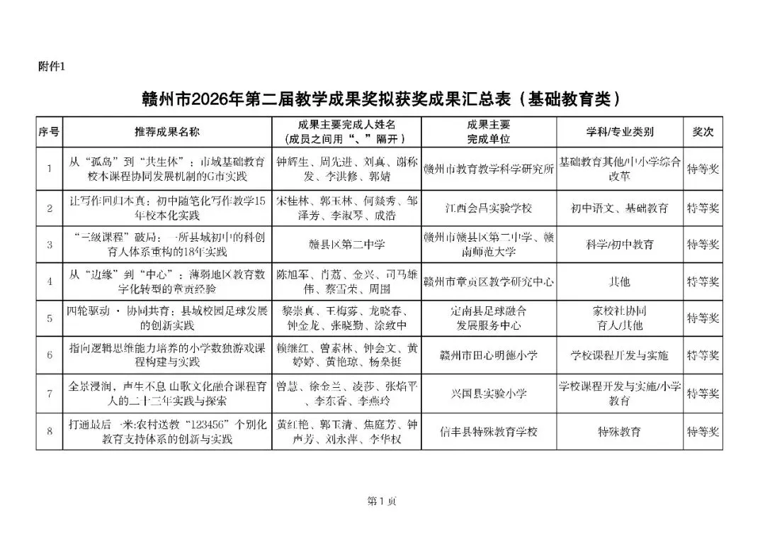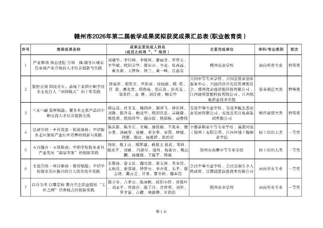 >赣州市2026年第二届教学成果奖拟获奖成果公示