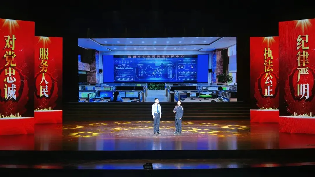 主题报告会在仪仗表演《向党和人民报告》拉开帷幕,通过“初心如磐·使命在肩”“利剑护航·平安有我”“提质增效·聚势谋远”三个篇章,向全体公安民辅警致以节日的问候,生动展现了抚州公安对党忠诚、服务人民、执法公正、纪律严明的精神风貌。