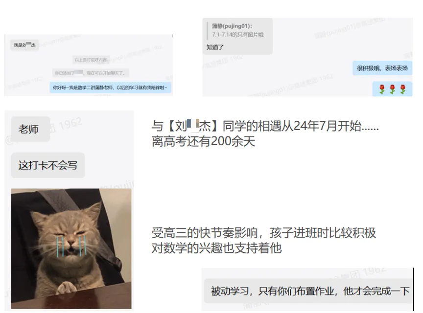 我与刘*杰初次相识是在2024年7月,作为高三学生的家长,在与刘*杰妈妈的首次电话沟通中,我能深切感受到她的焦虑情绪——距离高考仅剩一年时间,妈妈迫切希望孩子的数学成绩能实现提升,更盼着他能把该掌握的知识点全部吃透。